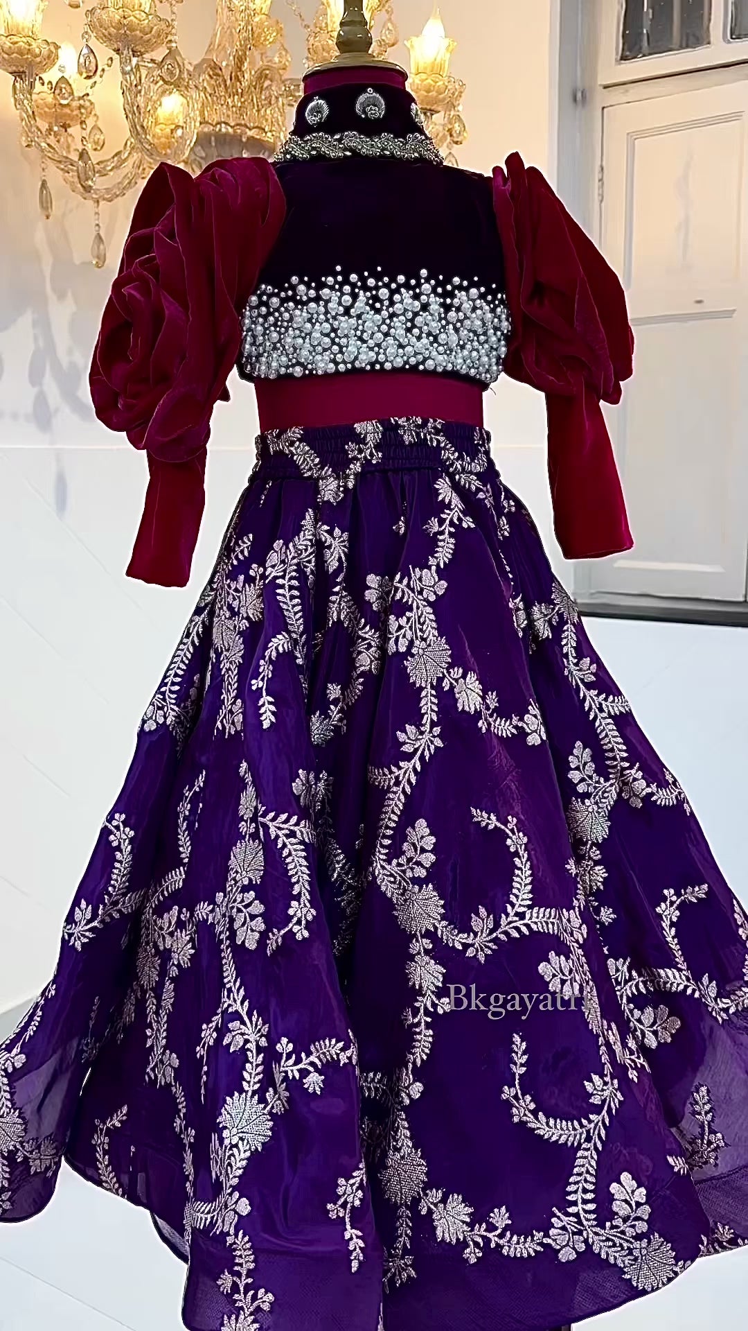 Pure silk Lehenga with hand embroidered velvet blouse