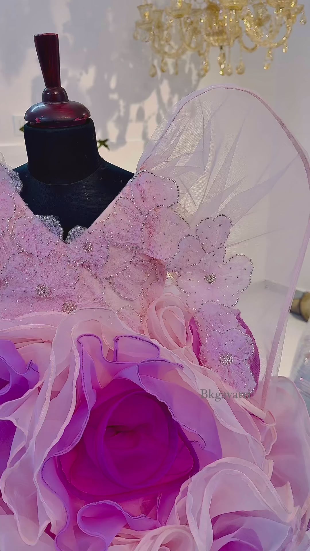 Delicately hand crafted flowers with hand embroidered flower top and structured sleeves