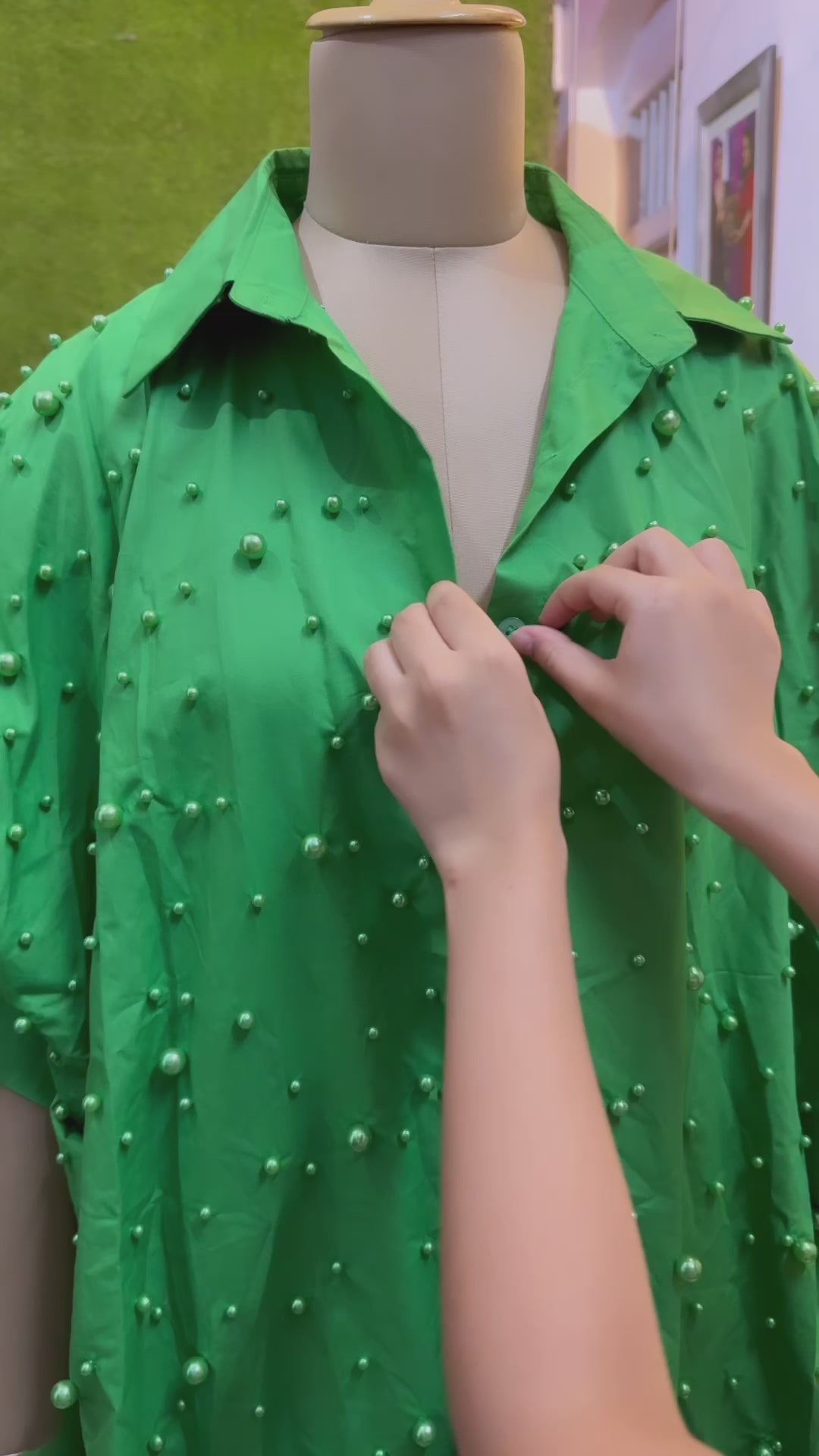 Green pearl dress